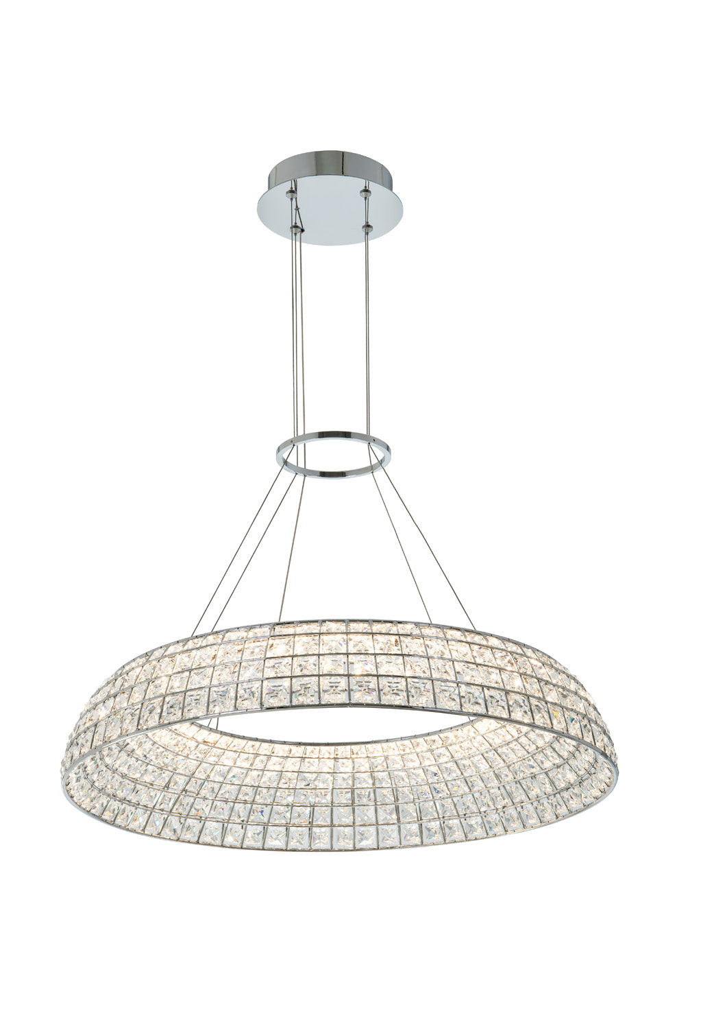 Allegri's contemporary Nuvole Collection circles the square. Each Firenze crystal is situated within an individual chrome square, allowing enough movement to ensure brilliant refracted light. The overall gently sloping domed shape was designed specifically to cast a warm glow. Offered in a wall sconce, island and four pendant sizes.
