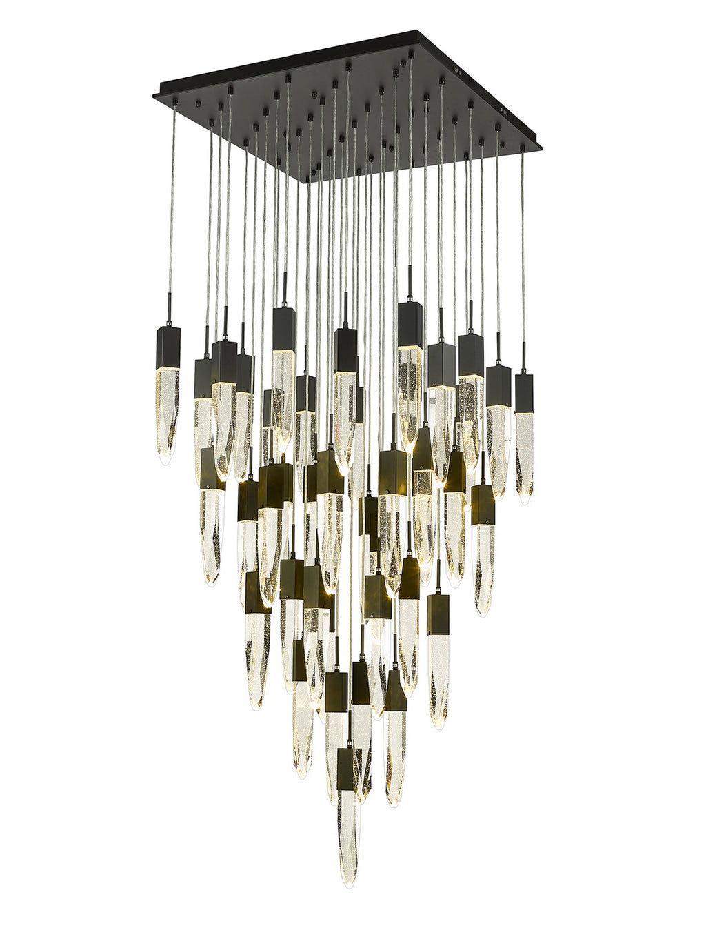 The Original Aspen Collection features hand-polished crystals, creating a stunning visual effect. This exquisite design brings a dramatic, modern flair to any space, elevating the atmosphere with its sophisticated, sculptural beauty.