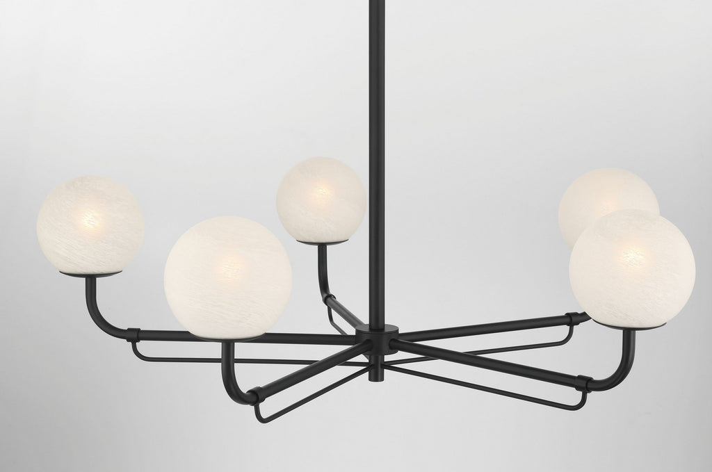 5-Light Chandelier - Dark Matte Black with Etched Alabaster Glass
