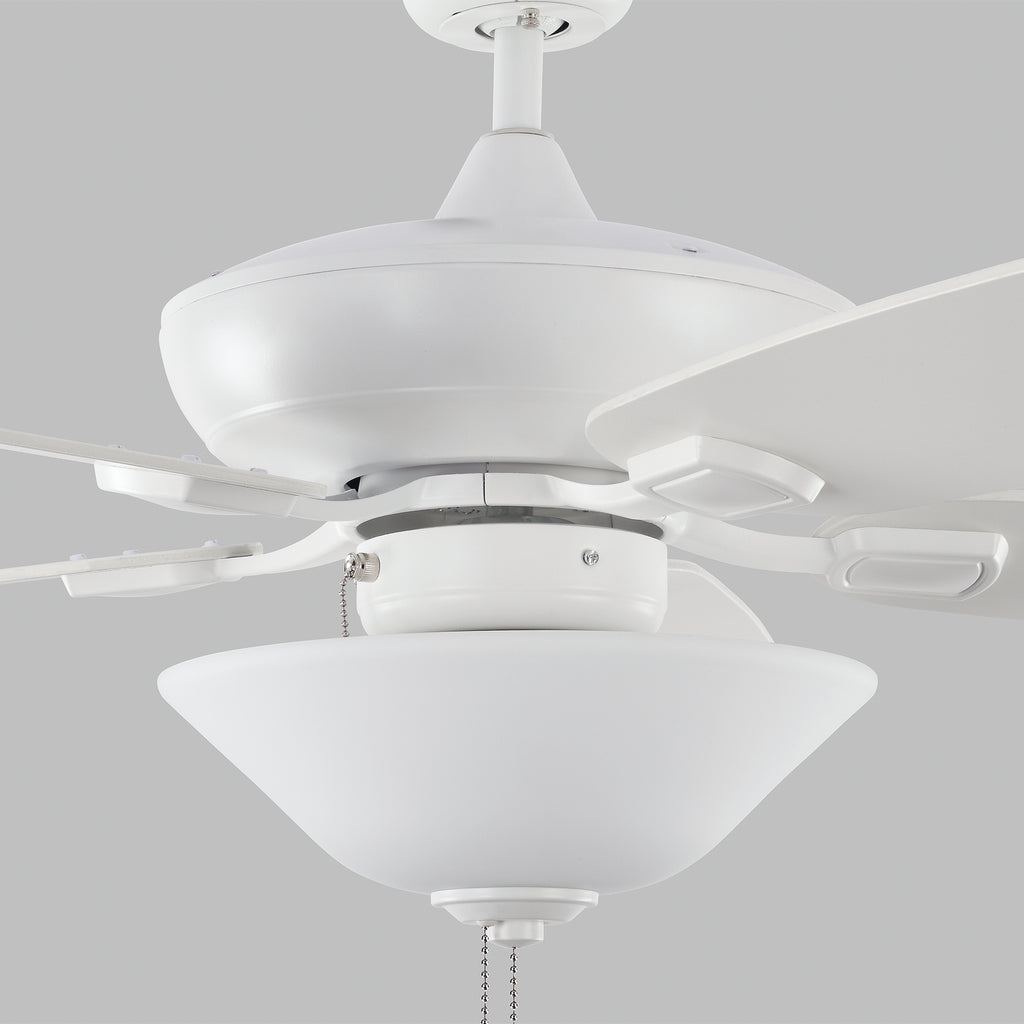 The Colony 52 LED in Matte White features a 153.0 X 18.0 3-speed motor with a Twelve-degree blade pitch. The tailored silhouette and multiple finishes and mounting options. Colony 52 ceiling fan makes it a Universal choice for any decor and room size. The Colony 52 is rated for damp locations and has an optional remote control.