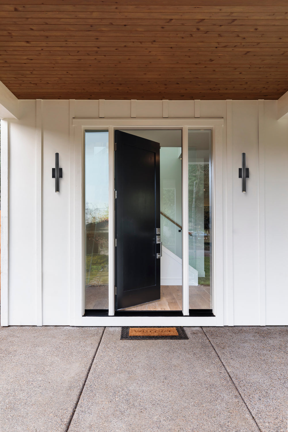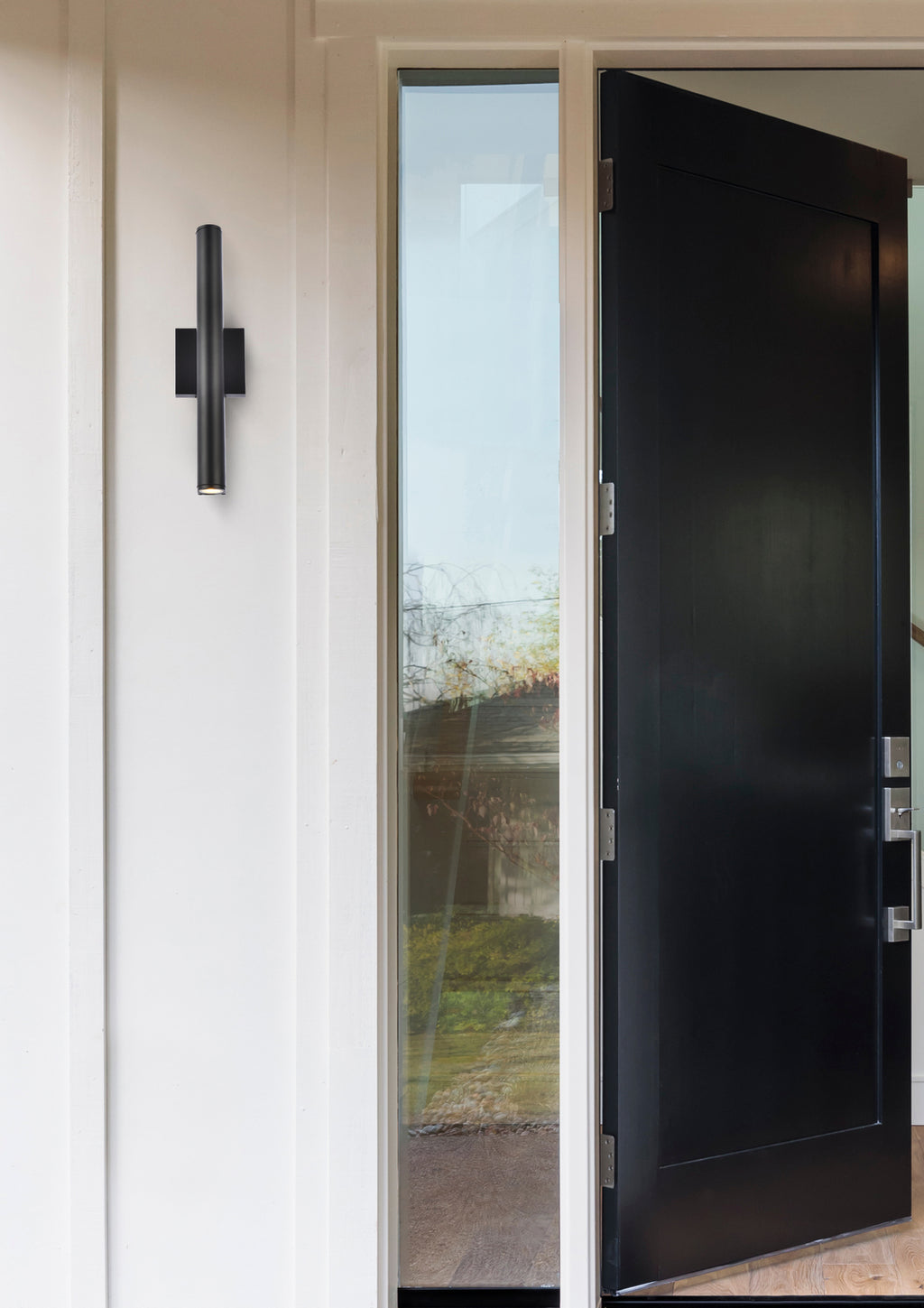 Minimalistic style and modern technology exudes in our Raine outdoor lighting Collection. The powder coated finish provides protection against the outdoor elements. Comes in two finishes in black and silver. Perfect for your front entryway, porch or balcony with these outdoor lights.