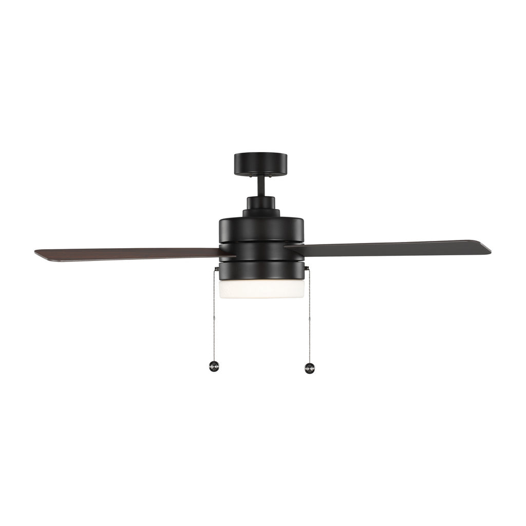 The Syrus 52 LED in Oil Rubbed Bronze features a 153.0 X 18.0 3-speed motor with a Thirteen-degree blade pitch. The Syrus ceiling fan is made using premium quality materials that ensure sturdy and durable construction. It sports pristine finishes, which easily blends in with most color schemes. The 52" Syrus 3 Blade Ceiling Fan by is wall controllable It includes a pull chain and quick detachable switch cup. Available in four finish combinations- Midnight Black housing with Midnight Black Blades (Polished Nickel Accents), Matte White Housing with Matte White Blades (Burnished Brass Accents), Midnight Black Housing with Midnight Black Blades, Brushed Steel Housing with Silver Blades