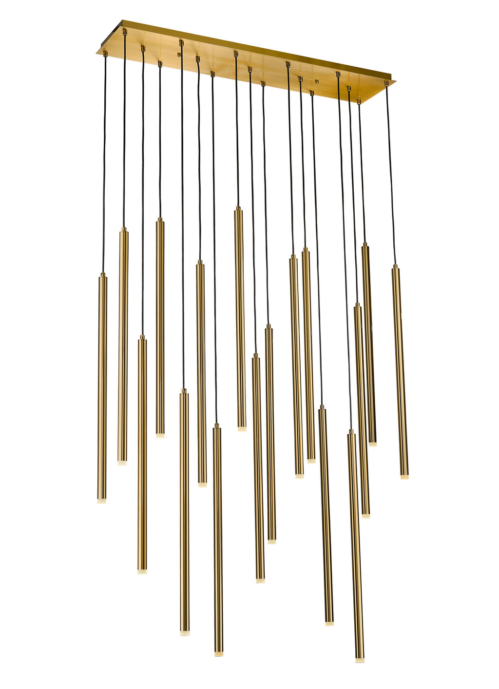 The Filmore Collection features a dynamic cluster of sleek tubes suspended from a minimalist canopy. The LED light emanates from within, casting a subtle yet inviting glow. With its simple, yet striking design, this fixture is eye-catching and full of character, adding a refined touch to any space.
