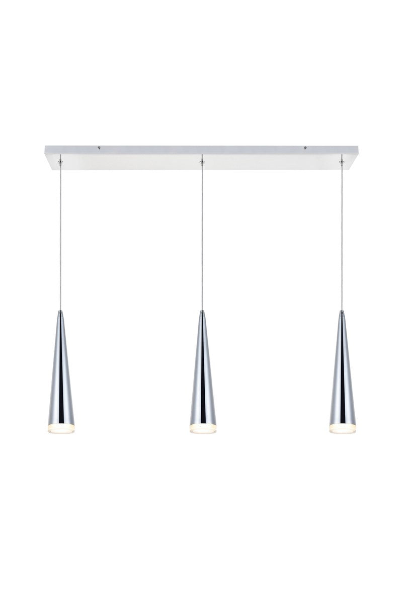 Get lost in beautiful lights and sleek design with the Fantasia collection 3-light pendant lamp in a chrome finish. Its slim cylindrical design ensures a radiant light that will shine down and enlighten the room. With three hanging together in a row, this pendant is perfect for any modern home, large or small.