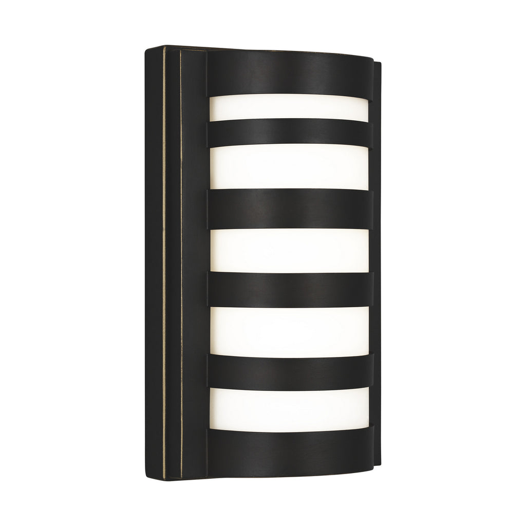 Low-profile, modern style integrated LED exterior sconce that complements urban and commercial structures. The Rebay one light outdoor wall fixture in antique bronze creates a warm and inviting welcome presentation for your home's exterior.