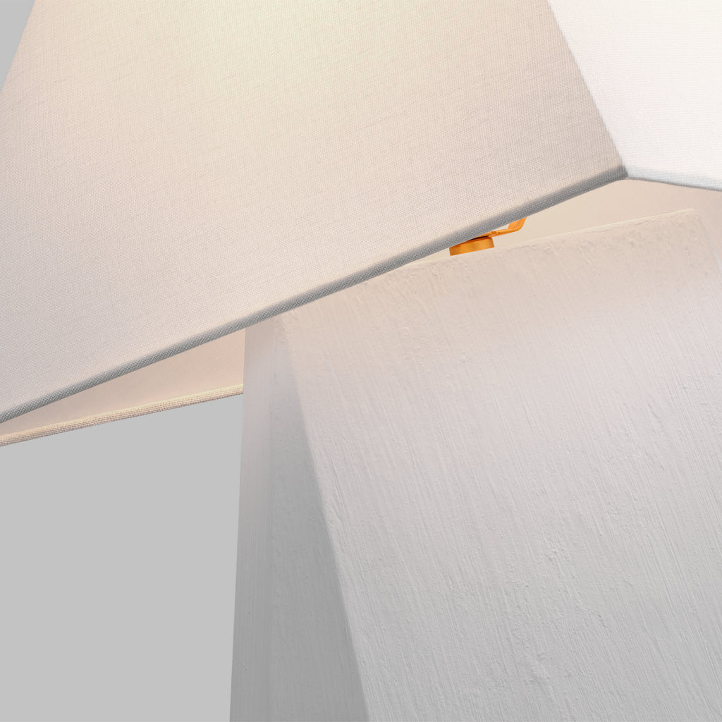 The Herrero table lamp series lends to the idea of a hand-formed artisan look. Bringing a tonal touch to the desktop or bedside, with a pyramid-style base in three finishes, then paired with a white line fabric shade. Herrero pairs contrasting materials, complementing almost any décor