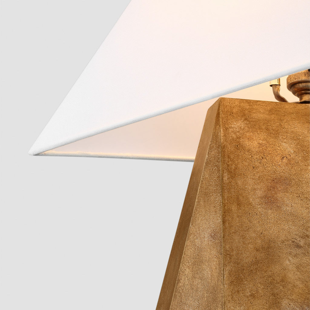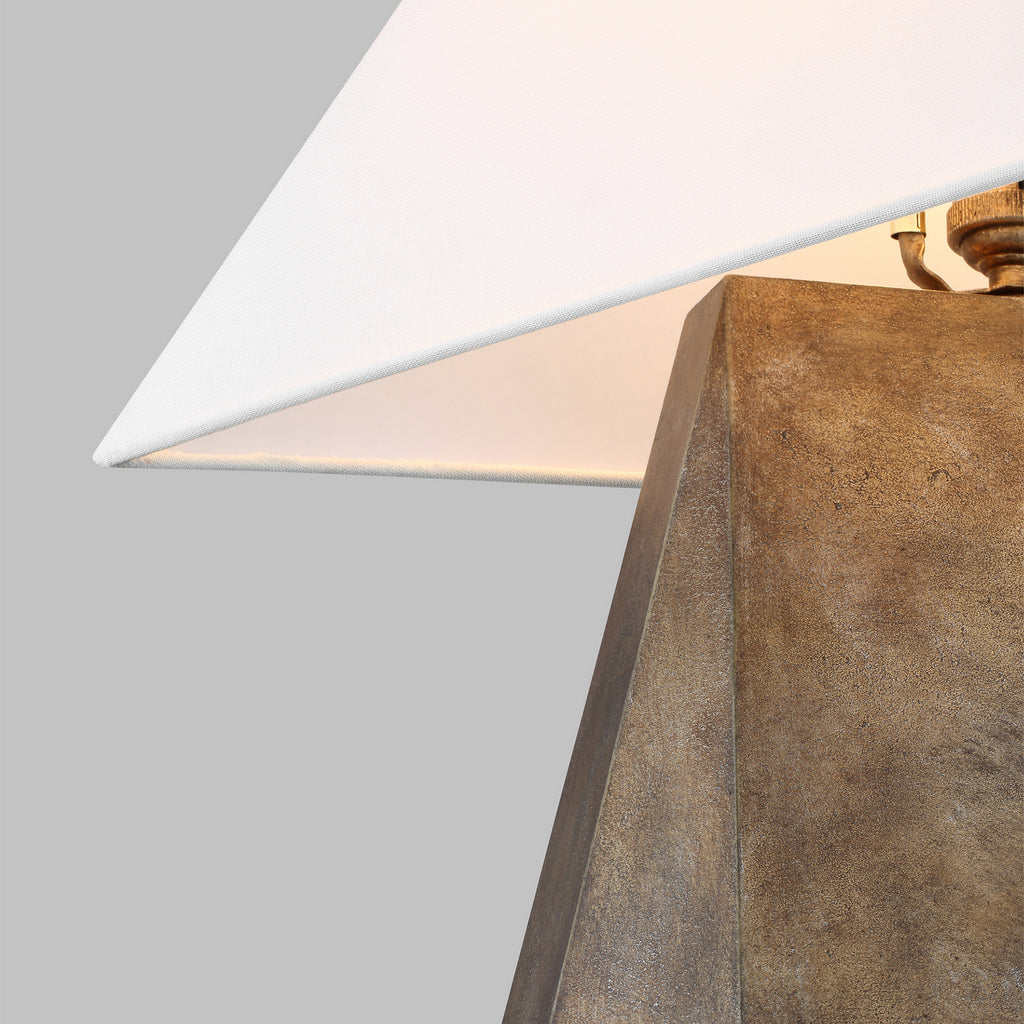 The Herrero table lamp series lends to the idea of a hand-formed artisan look. Bringing a tonal touch to the desktop or bedside, with a pyramid-style base in three finishes, then paired with a white line fabric shade. Herrero pairs contrasting materials, complementing almost any décor