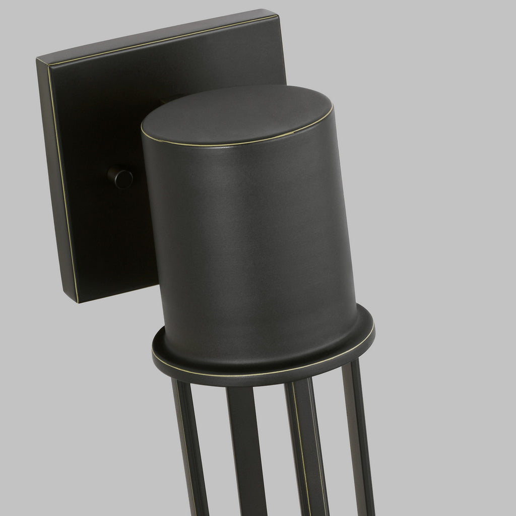 The Union one light outdoor wall fixture in Antique Bronze is a contemporary outdoor collection, featuring a minimalist design and integrated LED for the ultimate urban sophistication. The LEDs are recessed into the top of the lantern and diffuse through the tempered glass creating a brilliant, peaceful glow. Union is also a great solution for areas with Dark Sky requirements.