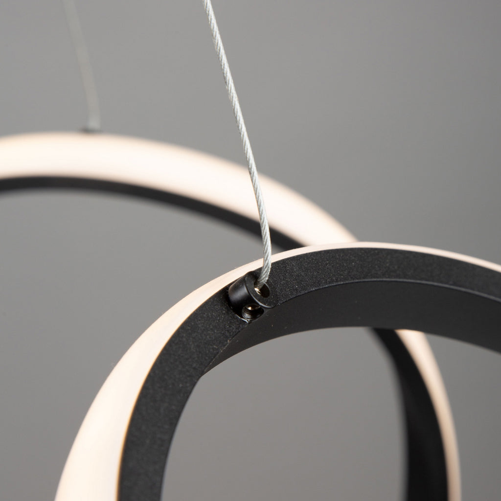 The Mira collection of pendants feature a truly unique designed frame. Suspended on height adjustable aircraft type cables, this LED pendant features a rich semi gloss black finish (These models are dimmable with appropriate LED rated dimmer switches).