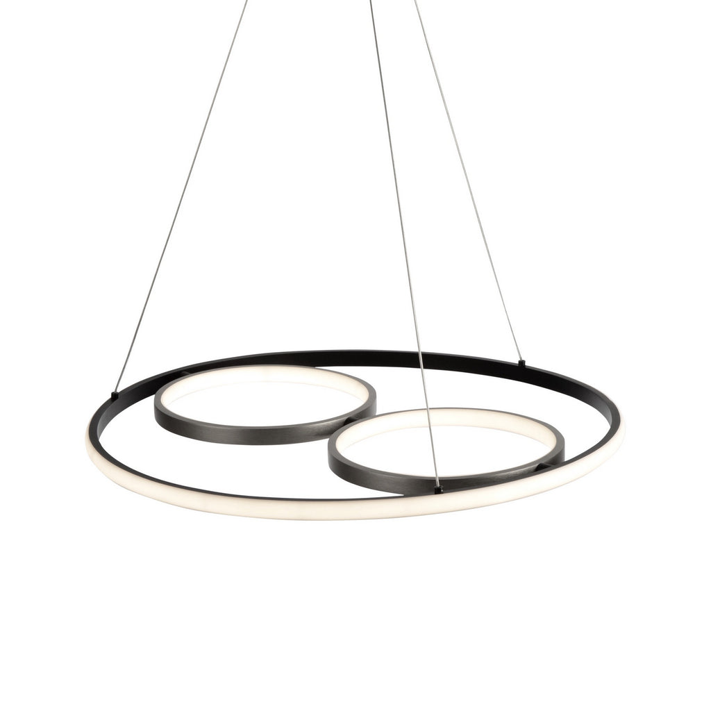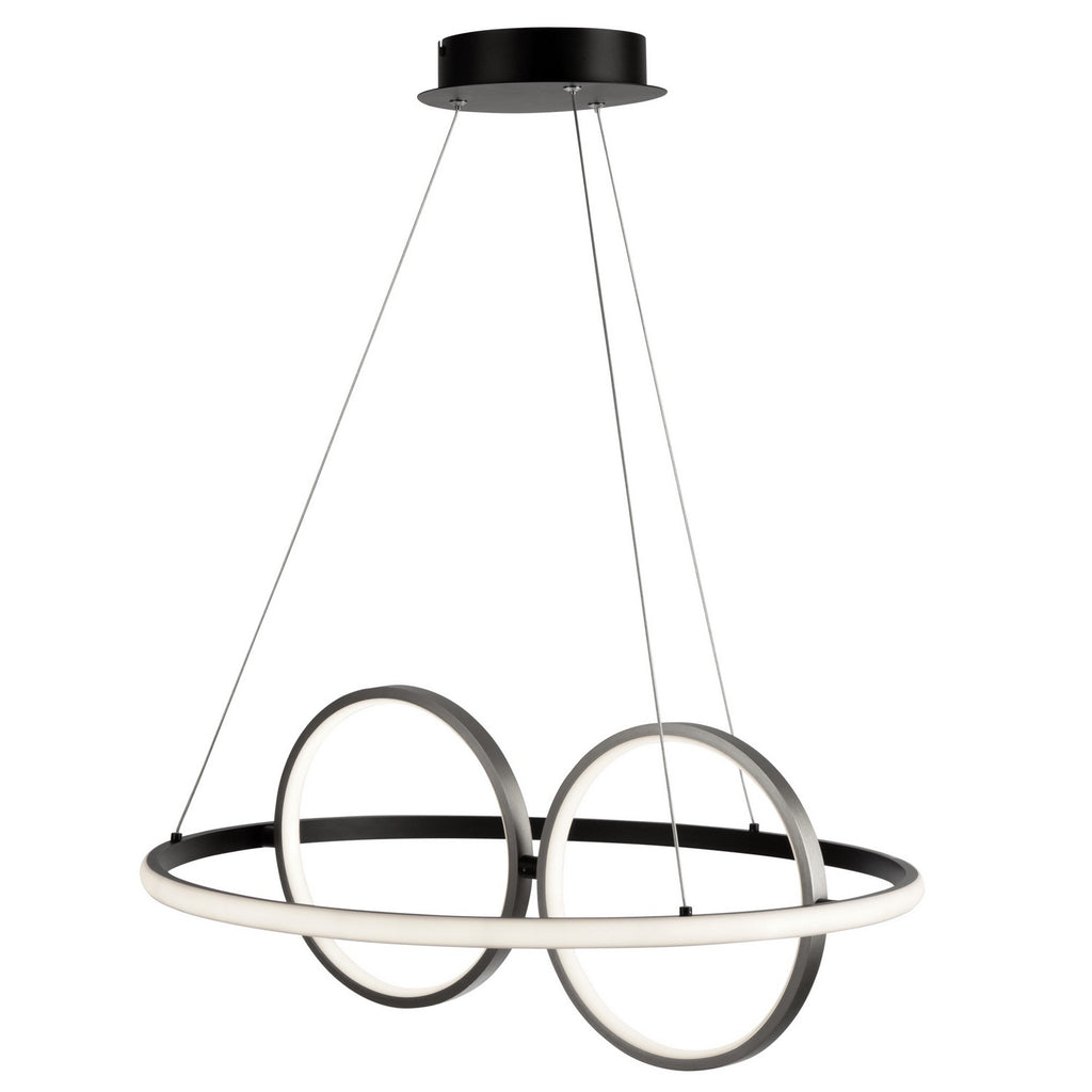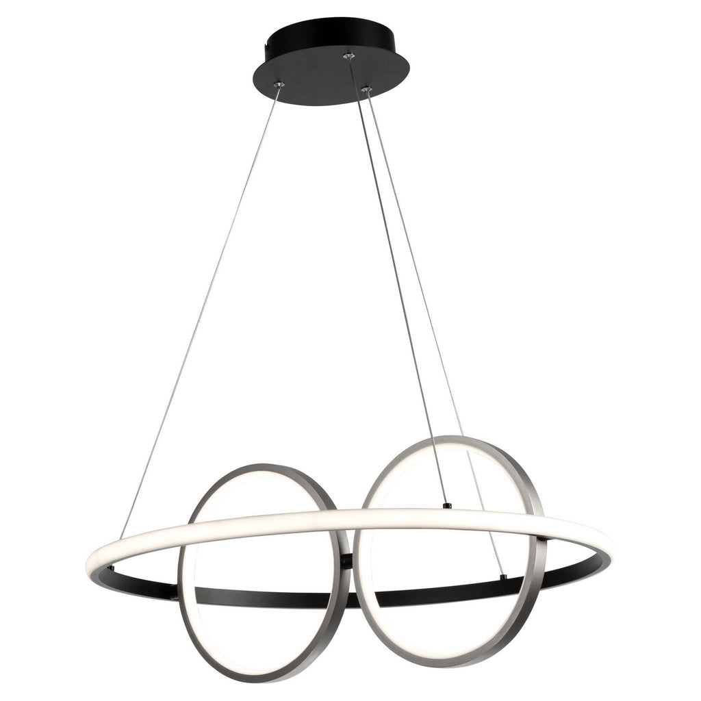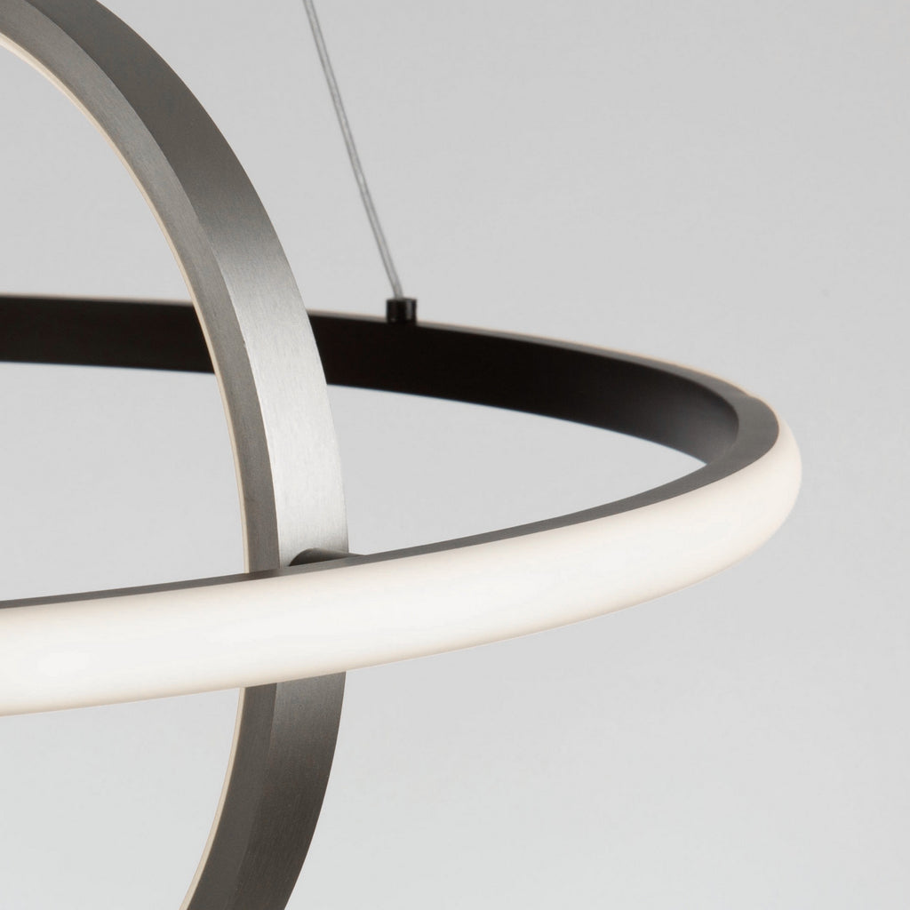 The Gemini collection of pendants is a real eye catcher as it is super trendy and unique. These pendants are suspended by thin aircraft type cable and are illuminated by bright and energy efficient LEDs. The frame is a dual tone. The outer frame is a matte black finish while the interior spheres have a textured brushed nickel finish. The inner sphere can be rotated to any desired position (These models are dimmable with appropriate LED rated dimmer switches).