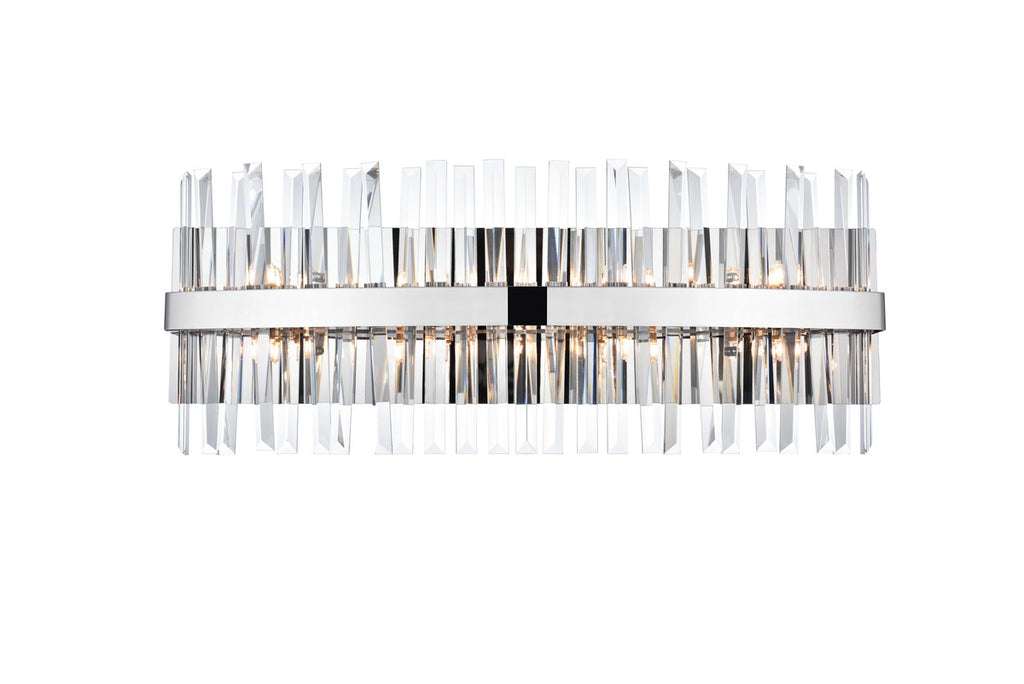 Modern crystal wall sconce features top and bottom tier crystal prisms staggered along a wrought iron frame. The thick metal frame wraps around top grade crystal prisms ensure it is built to last, definitely worth it. Mount this work of art and dim the lights for a bit of sophisticated lighting in your home. Get lost in a beautiful light and sleek design available in multiple finishes.