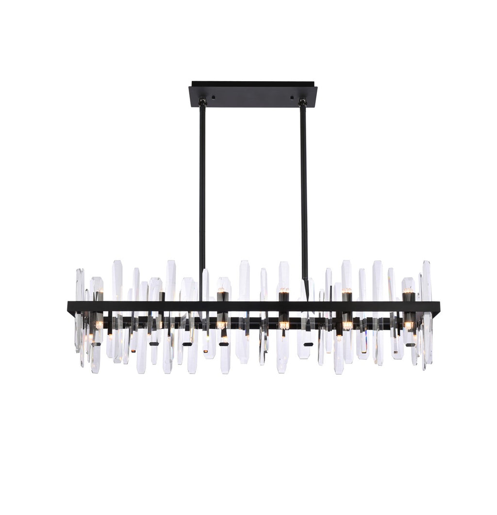 Modern crystal chandelier features top and bottom tier crystal prisms staggered along the wrought iron frame. The thick metal frame wraps around top grade crystal prisms ensure it is built to last, definitely worth it. Hang this work of art and dim the lights for a bit of sophisticated lighting in your home. Get lost in a beautiful light and sleek design available in multiple finishes. The hanging rod conveniently comes with a slope ceiling adapter, perfect for your vaulted or angled ceiling.