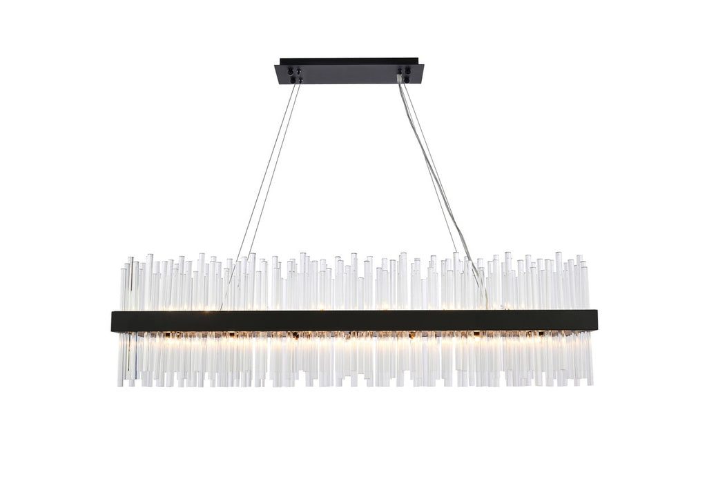 This stately fixture combines timeless elegance with modern and attractive sophistication. The delicate juxtaposition of upright and hanging clear glass rods creates a truly stunning visual statement, seamlessly woven together within a sleek bold metal frame. This expressive piece would be a welcomed and treasured addition to a wide range of modern residential styles.