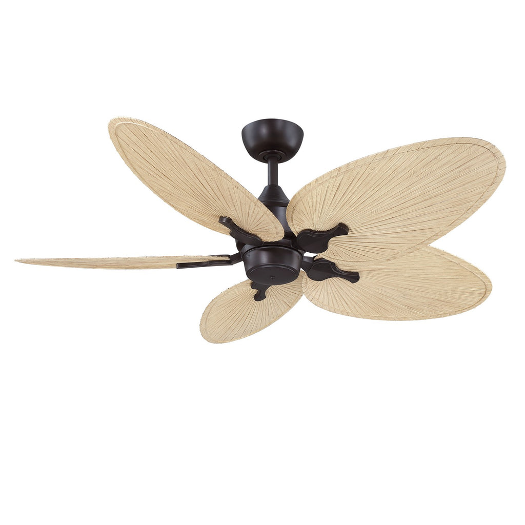 The 5-blade Islander by Fanimation in the Dark Bronze finish allows you to create an oasis of calm within your home. The choice of multiple tropically inspired blade styles (sold separately) will help transform living rooms, bedrooms, and sunrooms into exotic yet casual settings. The blade sweep ranges from 68 to 80 inches, depending on the style selected. Best of all, the Energy Star-rated Islander consumes 70 percent less energy than a conventional ceiling fan thanks to its DC-powered motor. Conserving energy never felt this good! The streamlined housing in the Dark Bronze finish seamlessly fits in with many décors. With the flexibility of 6 forward and 6 reverse speeds, you can choose to relax under a gentle breeze, experience some major cooling effects during a heat wave and everything in between. Sloped ceilings are no problem for the Islander, it can be installed in ceilings with up to a 30 degree slope. A remote control is included (an optional wall control can be ordered). All Fanimation motors are protected by a limited lifetime warranty.