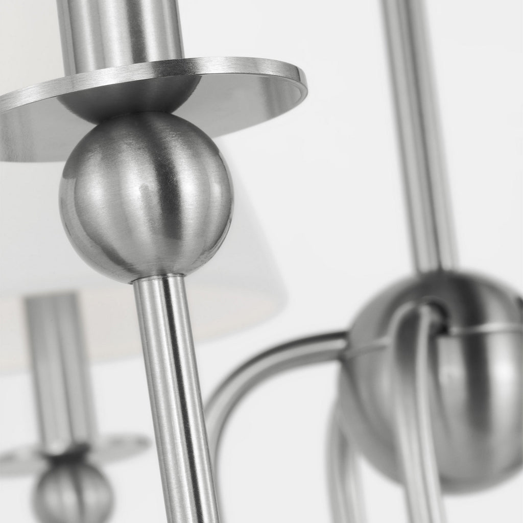 The Elsay series by Drew & Jonathan updates the classic chandelier with the elegantly deep curves of its J-shaped arms. Subtle spherical and cylindrical details create a new sense of traditional aesthetics, enhanced by linen shades that lend a soft finish. This chandelier will create a sophisticated statement in dining rooms, living rooms and bedrooms alike.