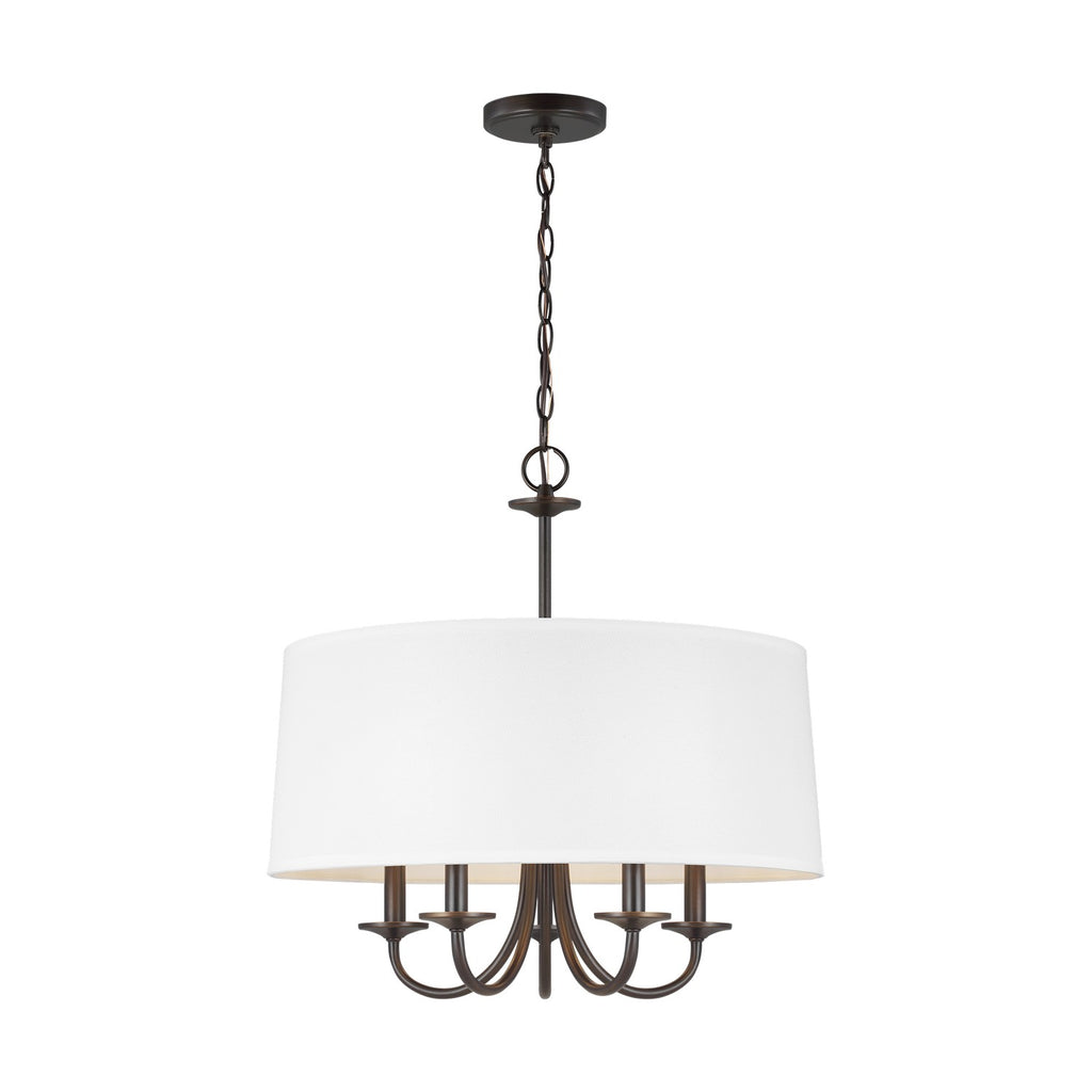 The Seville five-light single tier modern style chandelier offered in the burnt sienna, brushed nickel or heirloom bronze finish offers a classic yet dramatic feel to your space. The mid-century design creates a calming oasis to the lighting design of any room. The by Generation Lighting has been an industry leader since 1919.